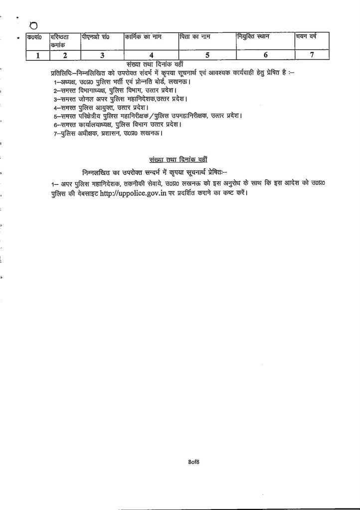 यह पदोन्नति उत्तर प्रदेश पुलिस भर्ती एवं प्रोन्नति बोर्ड, लखनऊ की प्राधिकृत विभागीय चयन समिति द्वारा की गई संस्तुति एवं पुलिस महानिदेशक, उत्तर प्रदेश के अनुमोदन के पश्चात प्रदान की गई है। चयनित मुख्य आरक्षियों को उनके वर्तमान नियुक्ति स्थान पर ही उप निरीक्षक नागरिक पुलिस के पद पर पदोन्नत किया गया है।