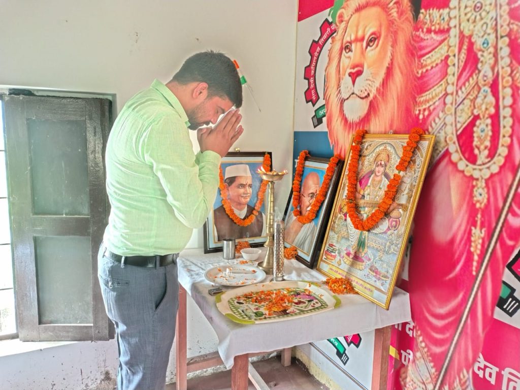 जयंती पर स्वयं सेवियों द्वारा श्रमदान करते हुए भुजैनी चौराहे की साफ-सफाई की गयी।