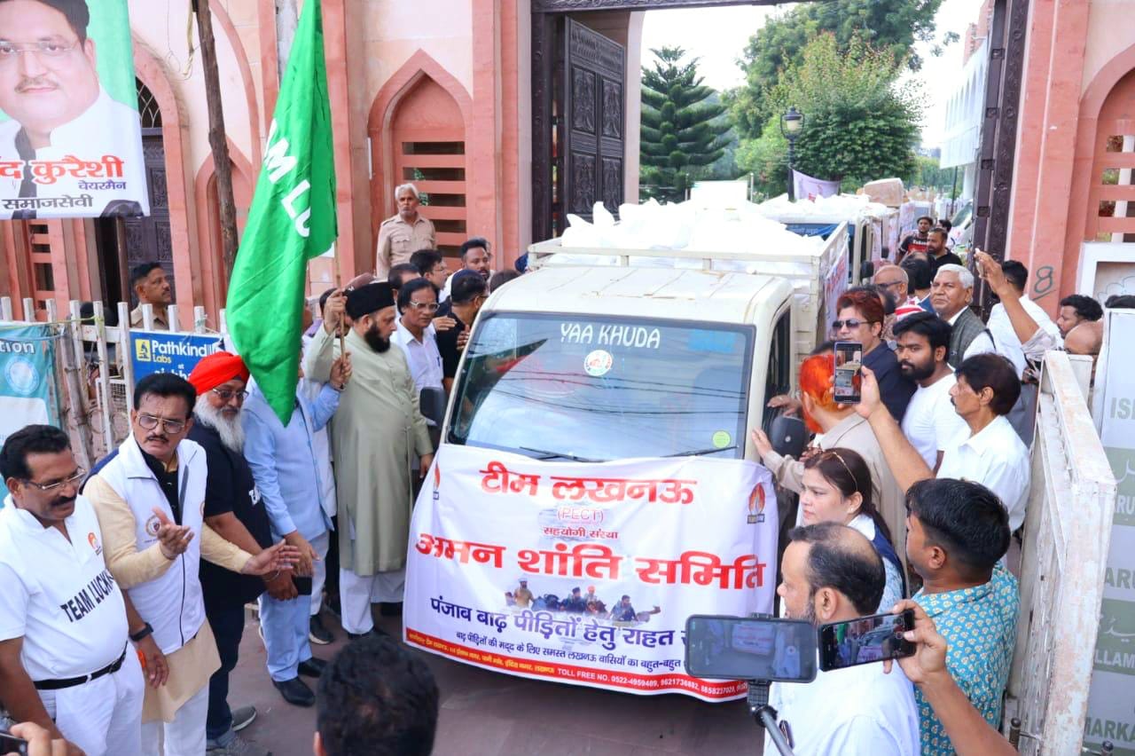 लखनऊ। पंजाब में बाढ़ से प्रभावित परिवारों की मदद के लिए टीम लखनऊ ने गुरुवार को इस्लामिक सेंटर ऑफ इंडिया, ऐशबाग से लगभग 25 टन राहत सामग्री भेजी। राहत सामग्री के वाहन को हरी झंडी दिखाकर रवाना किया गया। इस अवसर पर टीम लखनऊ के संरक्षक मौलाना खालिद रशीद फरंगी महली ने कहा कि हर जरूरतमंद की मदद करना हम सभी का फर्ज है।