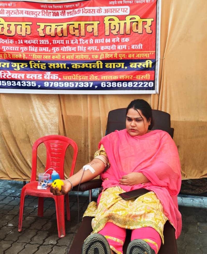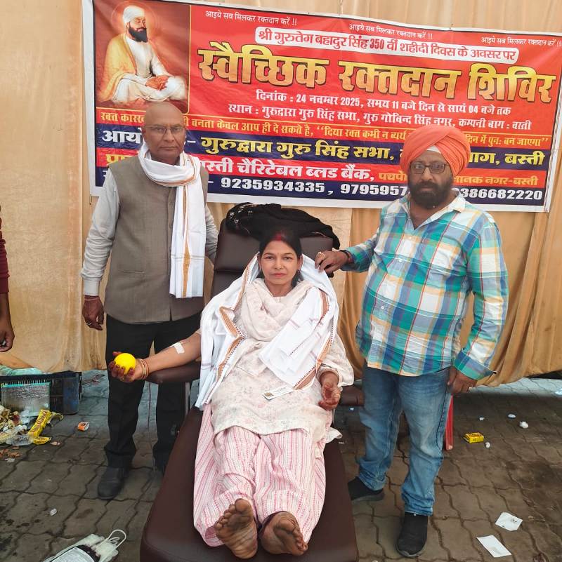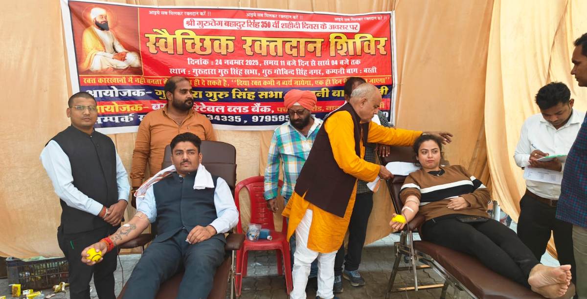 बस्ती। सोमवार को श्री गुरु तेग बहादुर सिंह जी के 350 में शहीदी दिवस पर गुरु गोविंद सिंह नगर कंपनी बाग में रक्तदान शिविर का आयोजन किया गया। हरी सिंह बब्लू के संयोजन में कुल 27 लोगों ने रक्तदान किया।