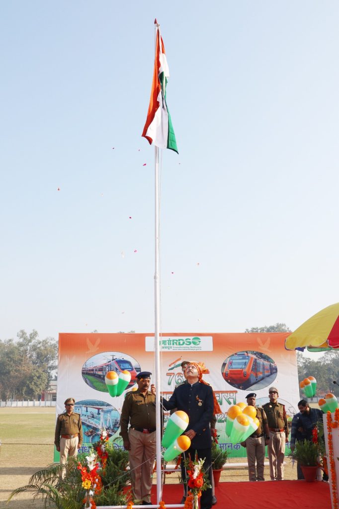 लखनऊ। आरडीएसओ में 76वाँ गणतंत्र दिवस पूरे उल्लास एवं उत्साह के साथ मनाया गया। आरडीएसओ स्टेडियम में आयोजित इस समारोह में महानिदेशक, आरडीएसओ श्री उदय बोरवणकर ने राष्ट्रीय ध्वज फहराया और आरपीएफ टुकड़ी की सलामी ली।