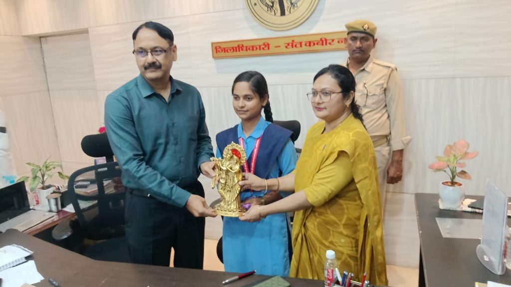 संत कबीर नगर। उत्तर प्रदेश शासन द्वारा महिलाओं/बालिकाओं के सुरक्षार्थ व स्वालंबन हेतु चलाये जा रहे मिशन शक्ति अभियान 5.0 के तहत पीएम श्री राजकीय बालिका इंटर कॉलेज खलीलाबाद की कक्षा 12वीं की छात्रा श्वेता तिवारी को एक दिन का सांकेतिक जिलाधिकारी बनाया गया।