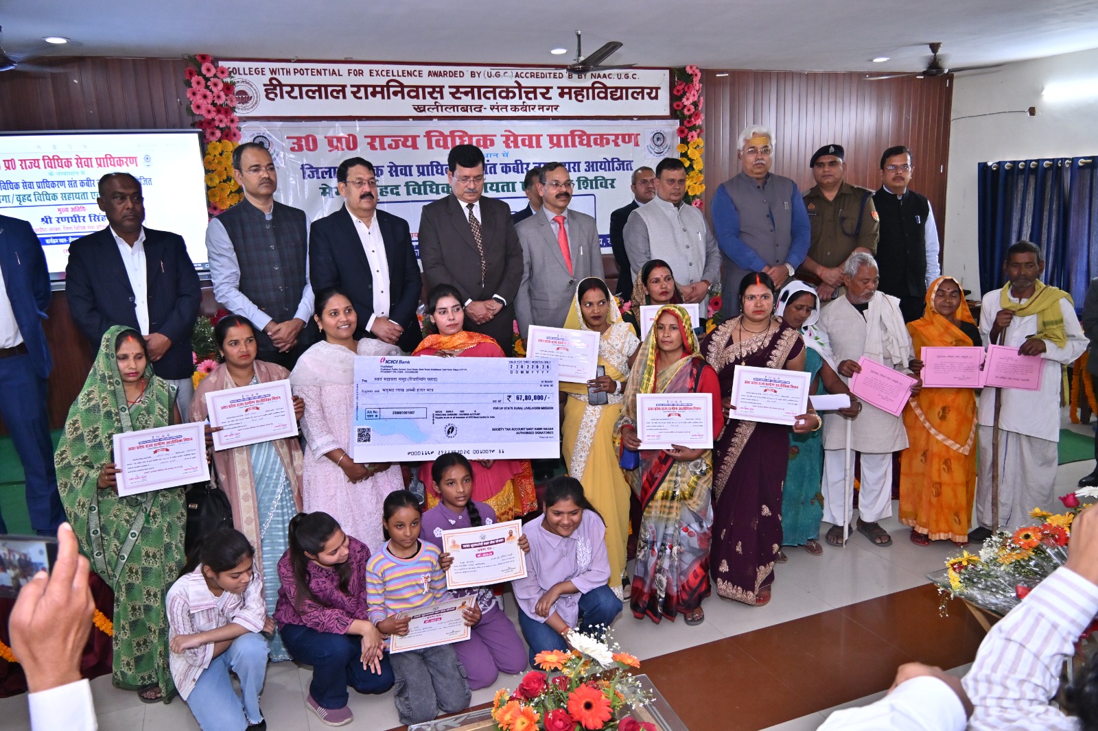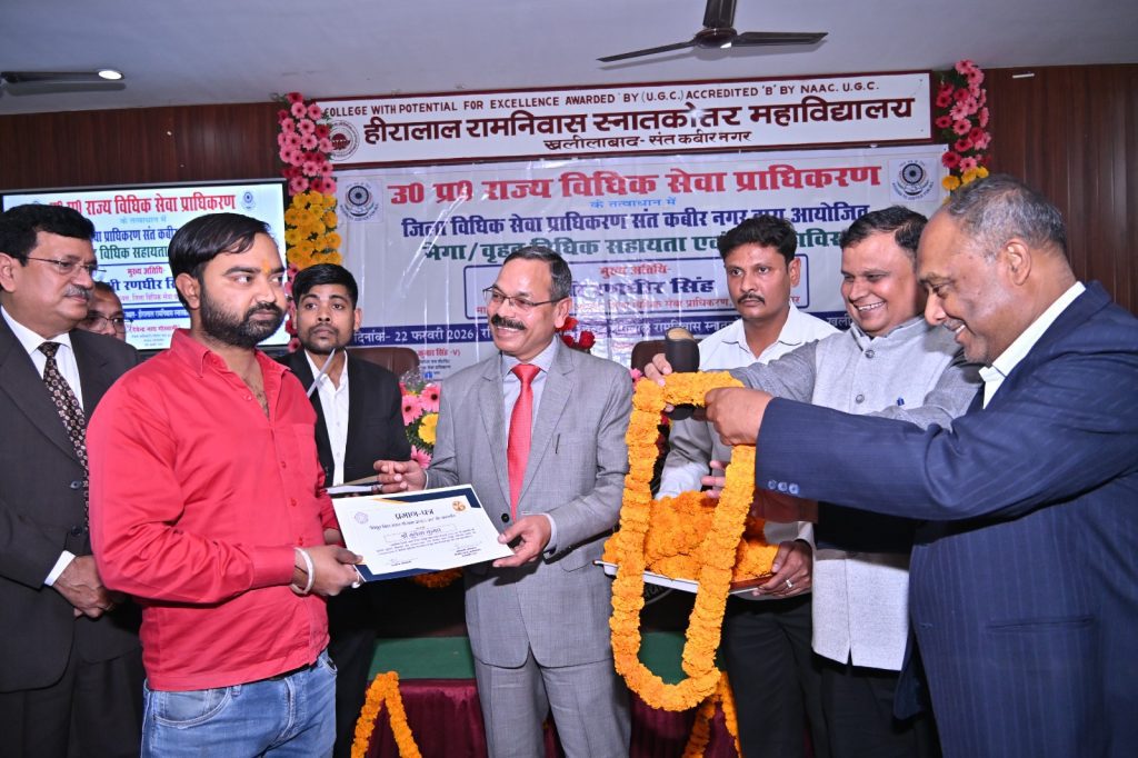 संत कबीर नगर। राष्ट्रीय विधिक सेवा प्राधिकरण के निर्देशन में रविवार को हीरालाल स्नातकोत्तर महाविद्यालय खलीलाबाद में मेगा/वृहद विधिक सहायता व सेवा शिविर का आयोजन किया गया। कार्यक्रम में विभिन्न विभागों के कुल 159 व्यक्तियों को लाभान्वित किया गया।