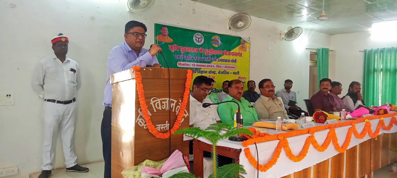 बस्ती। कृषि सूचना तंत्र के सुदृढ़ीकरण एवं कृषक जागरूकता कार्यक्रम के अंतर्गत कृषि विज्ञान केंद्र बंजरिया के नाना जी देशमुख सभागार में जिलाधिकारी रवीश गुप्ता की अध्यक्षता में एक दिवसीय रबी उत्पादकता गोष्टी का कृषि विभाग द्वारा आयोजन किया गया। जिसमें जिलाधिकारी ने जनपद में खाद, दवा एवं बीज की उपलब्धता के बारे में बताया।