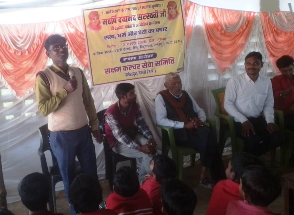 बस्ती। शहर से सटे नगर पंचायत गणेशपुर स्थित एसपीपीवाई शिशु विद्यालय परिसर में गुरुवार को स्वामी दयानंद सरस्वती की जयंती श्रद्धा और उत्साह के साथ मनाई गई। कार्यक्रम का आयोजन सक्षम कल्चर सेवा समिति के तत्वावधान में किया गया।