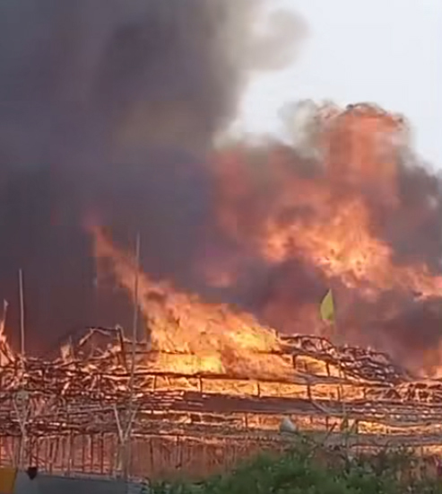 -फायर बिग्रेड ने बुझायी आग, यज्ञ में शामिल होने के लिए देश के विभिन्न जगहों से आए थे हजारों श्रद्धालु।