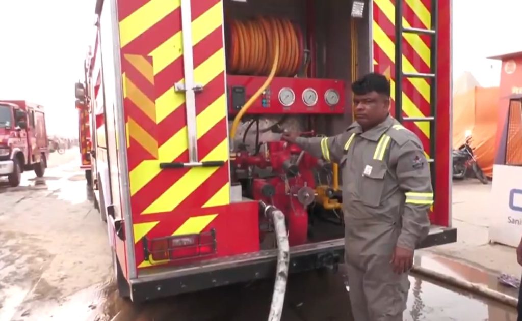 प्रदेश के सभी 75 जिलों के लिए संगम का पवित्र जल लेकर अग्नि शमन विभाग की दमकल रवाना