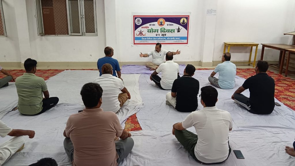 संत कबीर नगर। मा0 जनपद न्यायाधीश महेंद्र प्रसाद चौधरी की अध्यक्षता में न्यायालय परिवार में अंतरराष्ट्रीय योग दिवस पर योगाभ्यास का कार्यक्रम आयोजित हुआ।