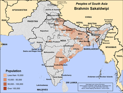 कालान्तर में मगध नरेश ने शाकद्वीपीय ब्राह्मणों के बहत्तर परिवारों को मगध के विभिन्न पुरों में बसा दिया । वहां से ये लोग भारत के विभिन्न भागों में फ़ैल गए । जैसे बिहार और उत्तरी भारत के अन्य भागों में एक प्रसिद्ध समुदाय है। इनकी दो उपशाखाएँ हैं: भोजक और मग। इनके गाँवों में अधिकांश सकलद्वीपी ब्राह्मणों के पास कृषि भूमि होती है, जिस पर भूमिहीन मजदूर खेती करते हैं। प्रत्येक शाक=सकलद्वीपी परिवार का अपना देवता होता है और वे पूर्वजों की पूजा करते हैं। उनके धार्मिक विशेषज्ञ भी उनके समुदाय से ही होते हैं। पुजारी और ज्योतिषी होने के नाते, सकलद्वीपी ब्राह्मणों का अन्य समुदायों के साथ संरक्षक-ग्राहक संबंध होता है।