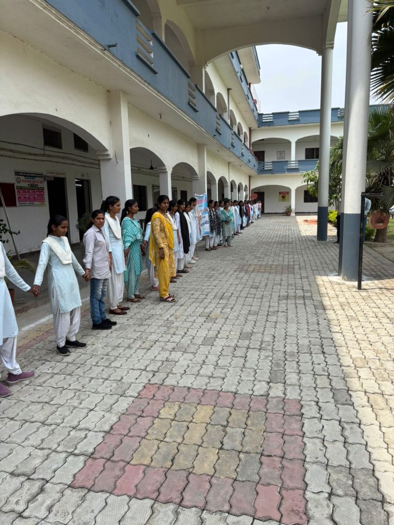 भुजैनी, संत कबीर नगर। गंगा देवी कपिल देव तिवारी पीजी कॉलेज भुजैनी में शुक्रवार को राष्ट्रीय सेवा योजना (एनएसएस) की स्वामी विवेकानंद एवं सरदार वल्लभभाई पटेल इकाइयों के संयुक्त तत्वाधान में नारी शक्ति वंदन अधिनियम 2023 के प्रचार-प्रसार हेतु कार्यक्रम आयोजित किया गया। कार्यक्रम की शुरुआत महिला स्वयंसेवियों द्वारा मानव श्रृंखला बनाकर की गई।