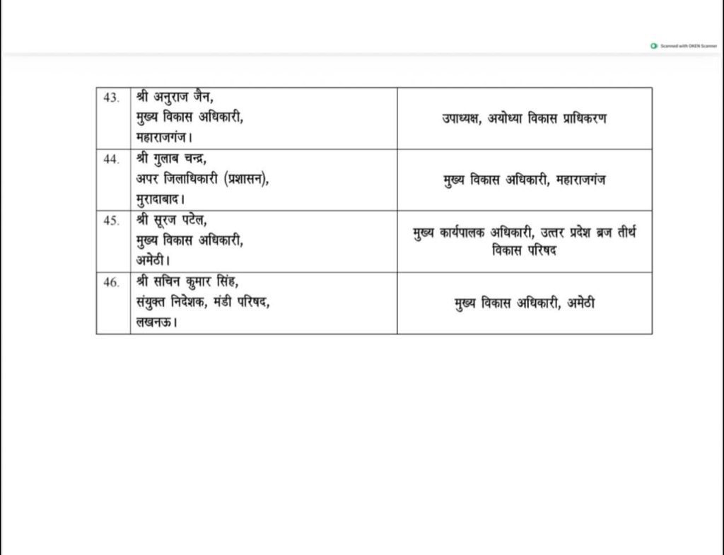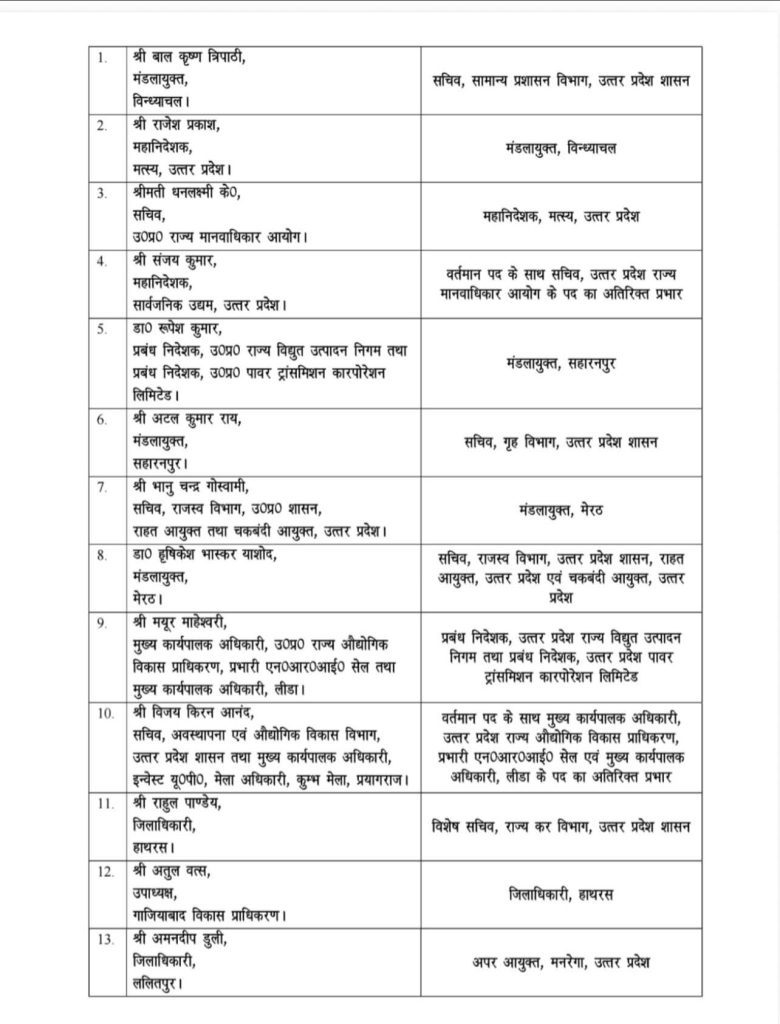 उत्तर प्रदेश टॉप समाचार लखनऊ यूपी में बड़ा प्रशासनिक फेरबदल: 46 IAS अफसरों के हुए तबादले, कई जिलों के DM बदले! Vijaydoot News October 28, 2025 Spread the love लखनऊ। उत्तर प्रदेश सरकार ने प्रशासनिक हलकों में बड़ा फेरबदल किया गया है। मंगलवार को 46 आईएएस अफसरों के तबादले कर दिए गए। शासन ने कई जिलों के जिलाधिकारियों के कार्यक्षेत्र में बदलाव किया है। देखें शासन द्वारा जारी लिस्ट:- About the Author Vijaydoot News Editor View All Posts Spread the love Post navigation Previous: अच्छा होना अपने आप में एक पुरस्कार है- ओम प्रकाश आर्यNext: डीएम ने निर्वाचक नामावली पुनरीक्षण को लेकर राजनीतिक दलों संग की बैठक। Related Stories उत्तर प्रदेश टॉप समाचार संत कबीर नगर सरदार पटेल जयंती व विकसित भारत पदयात्रा की तैयारियों की डीएम ने की समीक्षा, दिए आवश्यक दिशा-निर्देश। Vijaydoot News October 28, 2025 उत्तर प्रदेश टॉप समाचार संत कबीर नगर मिशन शक्ति फेज 5.0 के तहत बेटी-बहू सम्मेलन कार्यक्रम व एन्टी रोमियो स्क्वॉड द्वारा चलाया गया बालिका सुरक्षा अभियान। Vijaydoot News October 28, 2025 उत्तर प्रदेश टॉप समाचार संत कबीर नगर डीएम ने निर्वाचक नामावली पुनरीक्षण को लेकर राजनीतिक दलों संग की बैठक। Vijaydoot News October 28, 2025