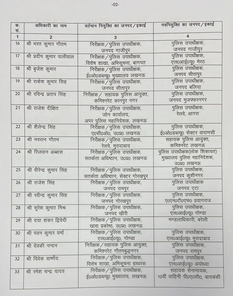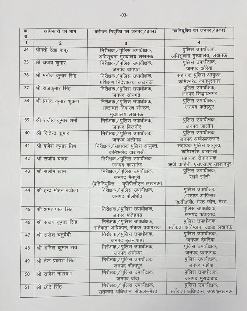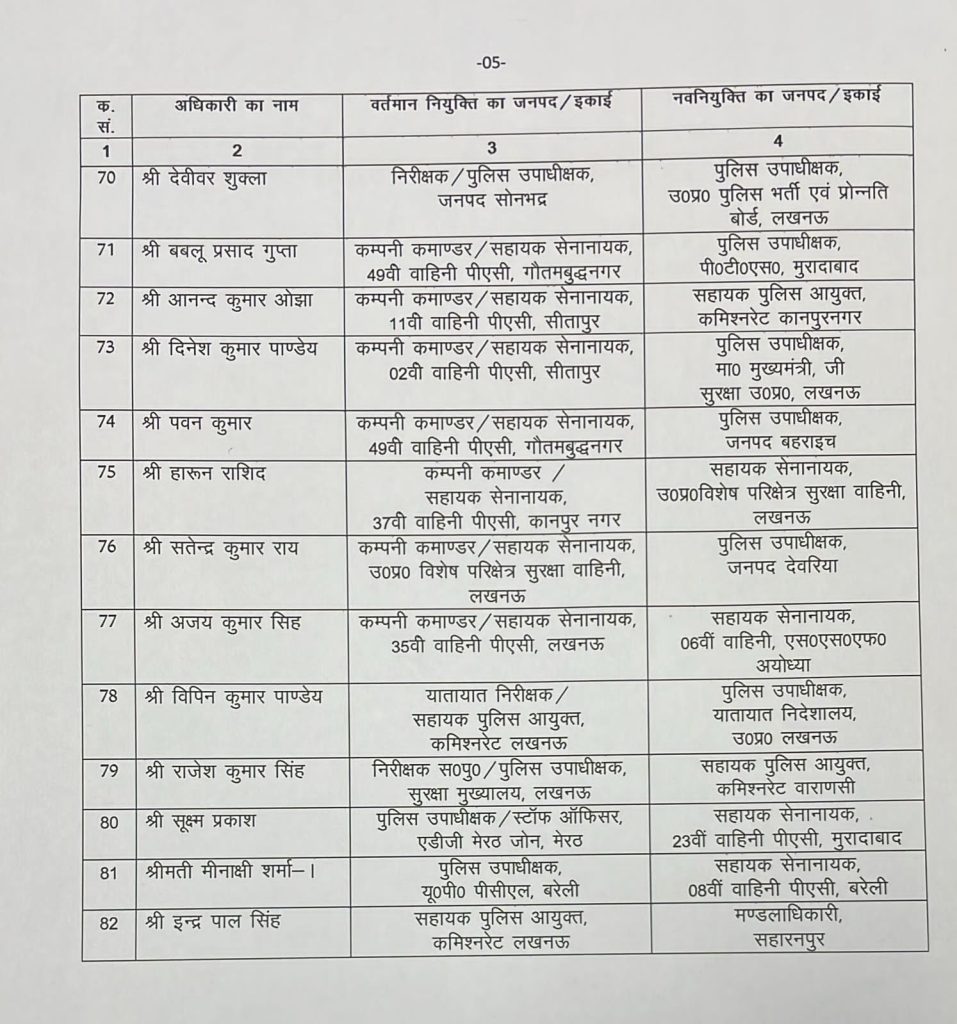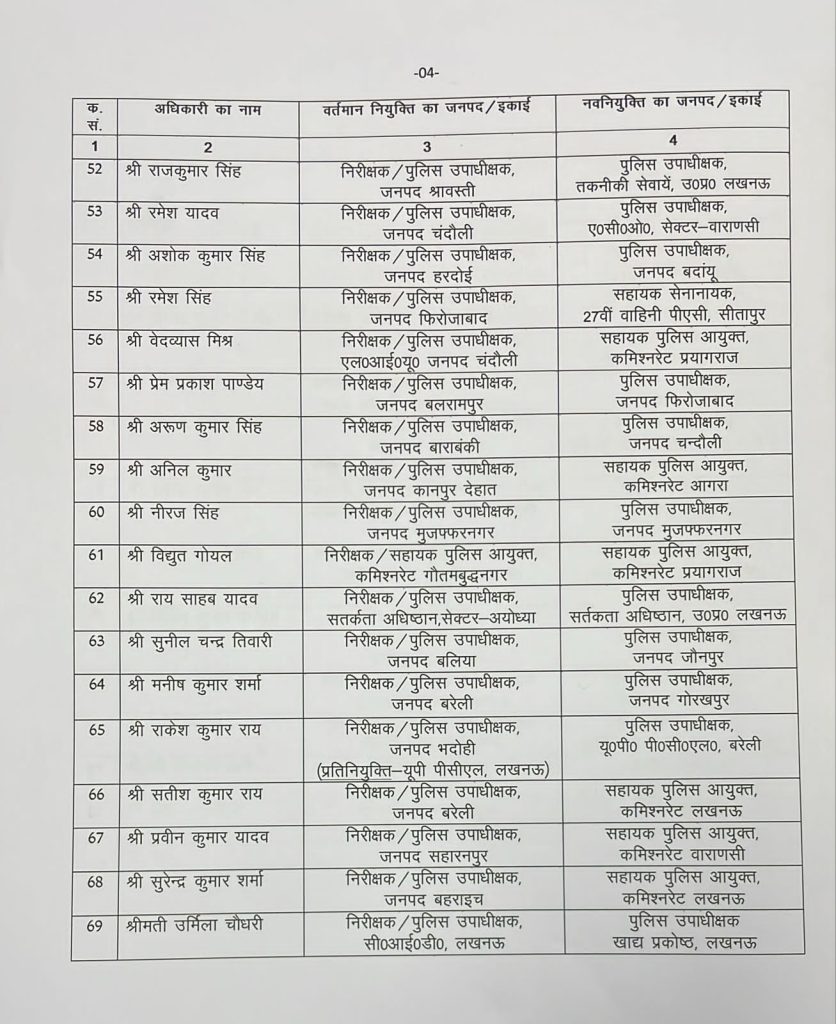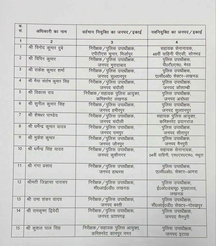 देखें पूरी तबादला सूची- कौन कहां भेजा गया और कहां से कौन आया।