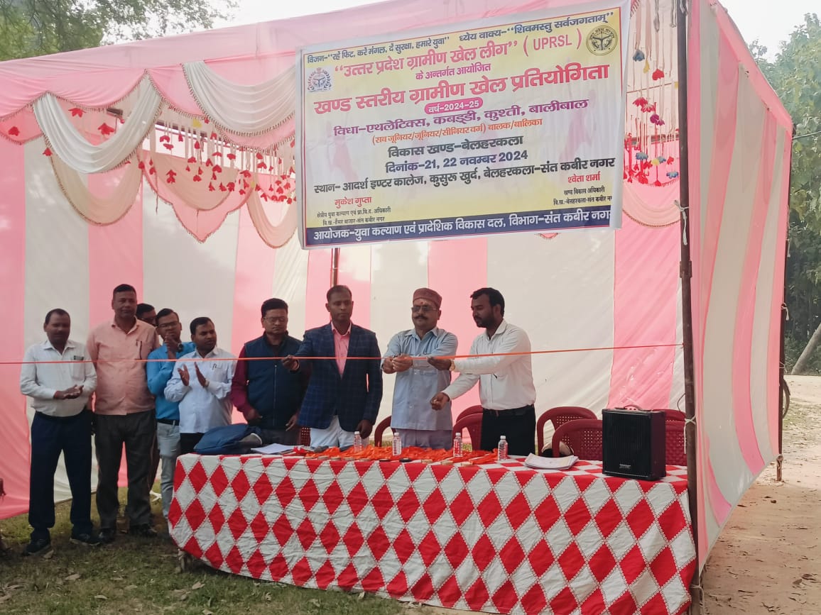 संत कबीर नगर। युवा कल्याण एवं प्रादेशिक विकास दल विभाग द्वारा दो दिवसीय खंड स्तरीय ग्रामीण खेल लीग के अंतर्गत खेल कूद प्रतियोगिता का आयोजन आदर्श इंटर कॉलेज कुसुरु- खुर्द में किया गया। जिसका उद्घाटन प्रबंधक श्री आनंद कुमार पांडेय जी द्वारा किया गया।