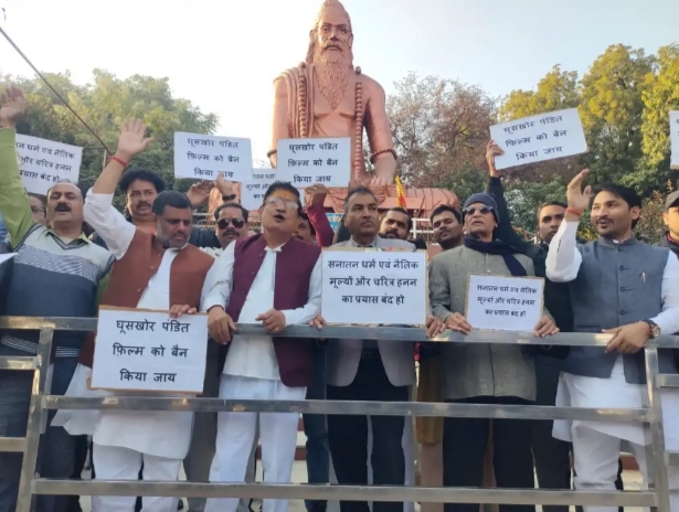 प्रयागराज। ब्राह्मण समाज की छवि को धूमिल करने वाली फिल्म “घूसखोर पंडित” के विरोध में शनिवार को ऋषि भारद्वाज की प्रतिमा के सामने ब्राह्मण समाज के विभिन्न संगठनों और नेताओं ने जोरदार विरोध प्रदर्शन किया। प्रदर्शनकारियों ने फिल्म पर सनातन धर्म, ब्राह्मण समाज और उसके नैतिक मूल्यों को गलत ढंग से प्रस्तुत करने का आरोप लगाया।