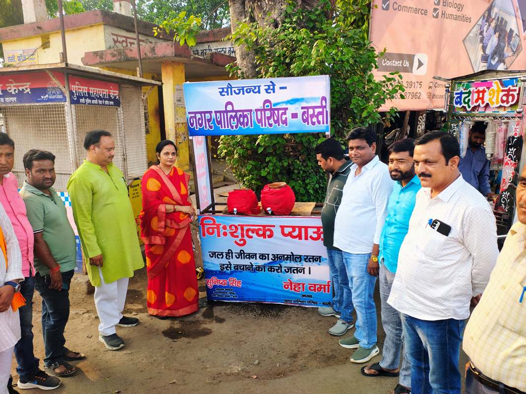 बस्ती। भीषण गर्मी में नागरिकों को पेयजल सुविधा उपलब्ध कराने के उद्देश्य से बुधवार को नगर पालिका परिषद अध्यक्ष नेहा वर्मा, भाजपा के वरिष्ठ नेता अंकुर वर्मा ने सभासदों और स्थानीय नागरिकों की उपस्थिति में शास्त्री चौक पर निःशुल्क प्याऊ का उद्घाटन किया। 20 प्रमुख स्थानों पर निःशुल्क पेयजल सुविधा की व्यवस्था की गई है।