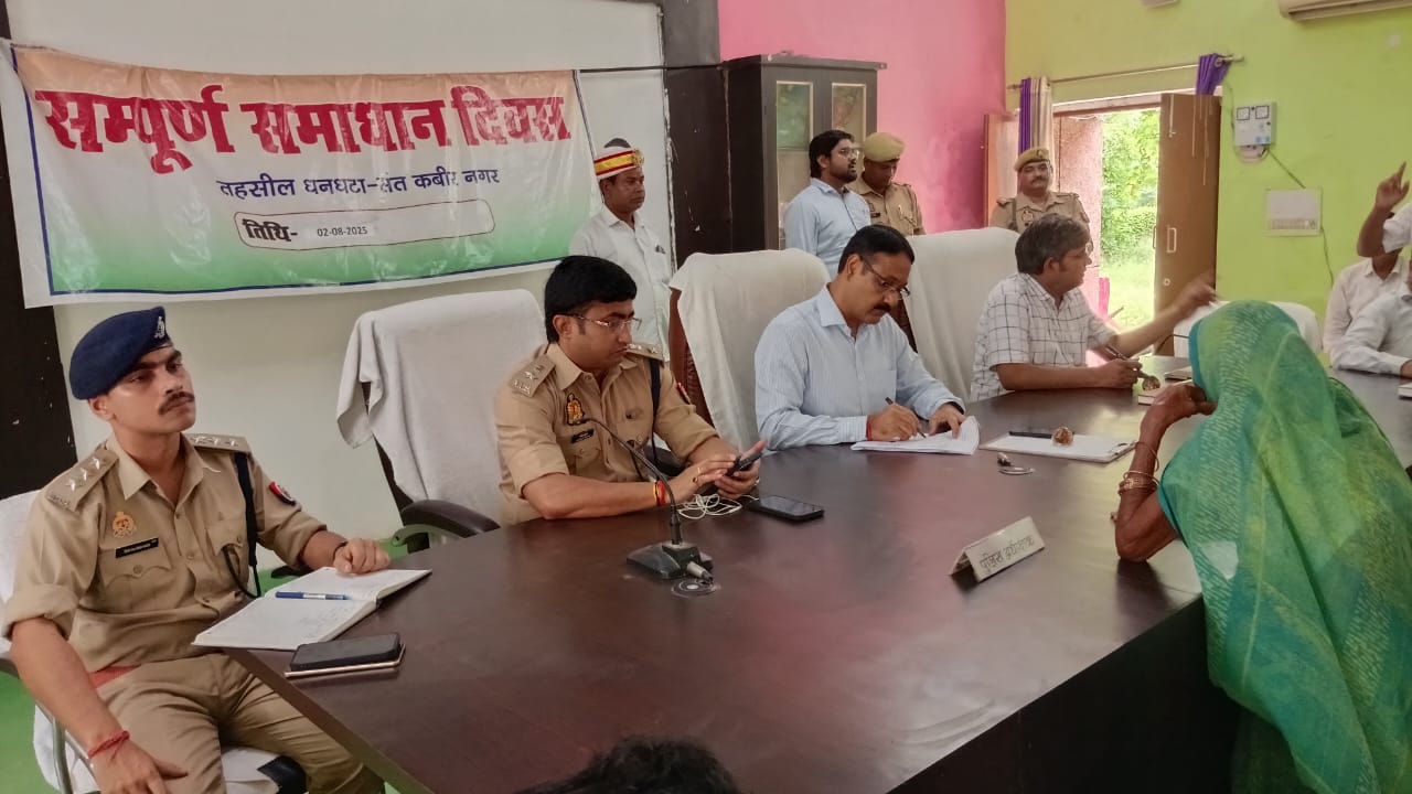 संत कबीर नगर। जिलाधिकारी आलोक कुमार की अध्यक्षता में धनघटा तहसील में सम्पूर्ण समाधान दिवस के आयोजन के दौरान फरियादियों की शिकायतों/समस्याओं को सुना गया। इस अवसर पर पुलिस अधीक्षक संदीप कुमार मीना उपस्थित रहे।