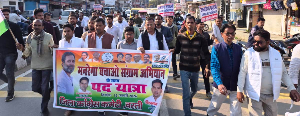 बस्ती। भारतीय राष्ट्रीय कांग्रेस ने गुरुवार को जिलाध्यक्ष विश्वनाथ चौधरी के नेतृत्व तथा पिछड़ा वर्ग कांग्रेस के प्रदेश उपाध्यक्ष डा. आलोक रंजन वर्मा के संयोजन में गोटवा से ‘मनरेगा बचाओ संग्राम पदयात्रा’ निकाली। यात्रा गोटवा से प्रारंभ होकर गनेशपुर होते हुए विभिन्न मार्गों से गांधी कला भवन पहुंची, जहां बापू की प्रतिमा के समक्ष इसका समापन हुआ।