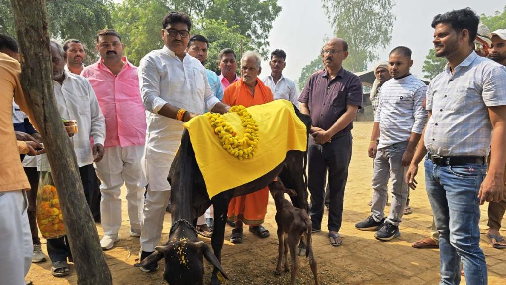 •गोवर्धन पूजा पर विधायक अजय सिंह ने किया गौ पूजन।