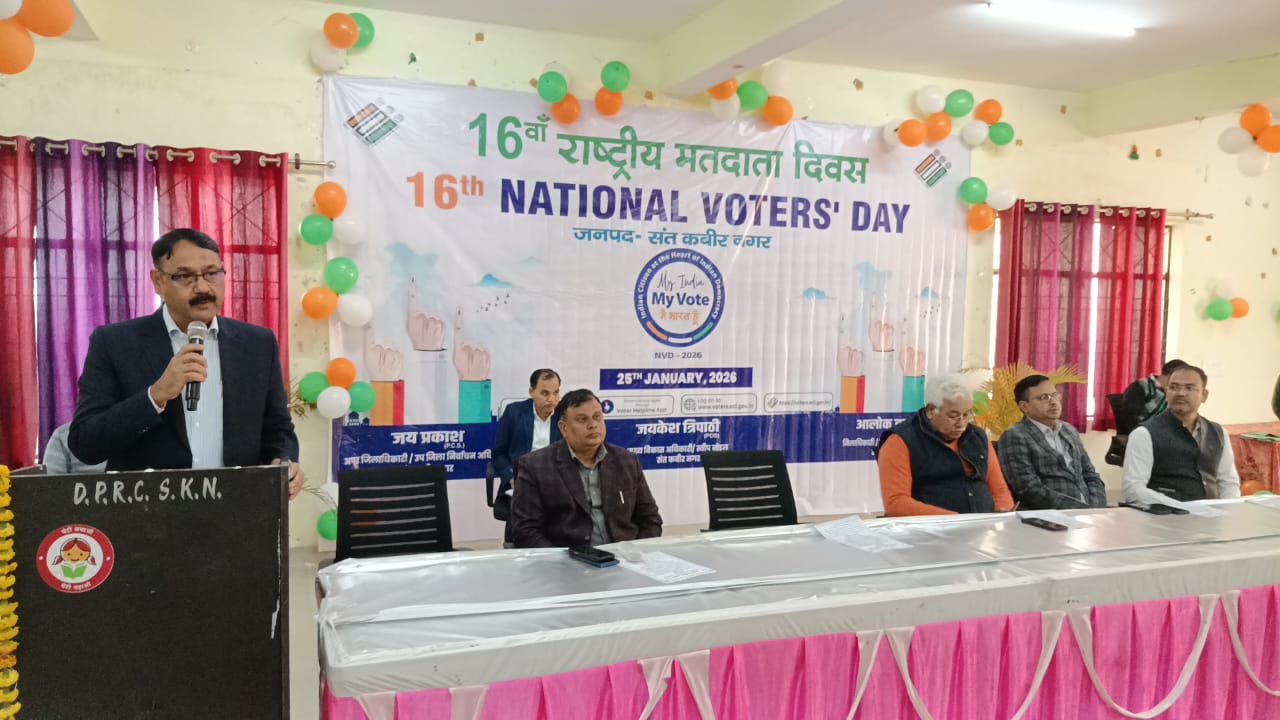 संत कबीर नगर। भारत निर्वाचन आयोग के निर्देश पर जिलाधिकारी आलोक कुमार की अध्यक्षता में 16वें राष्ट्रीय मतदाता दिवस समारोह का आयोजन विकास भवन परिसर के डीपीआरसी हाल में किया गया। इस अवसर पर अपर जिलाधिकारी (वित्त व राजस्व) जयप्रकाश व मुख्य विकास अधिकारी जयकेश त्रिपाठी उपस्थित रहे।
