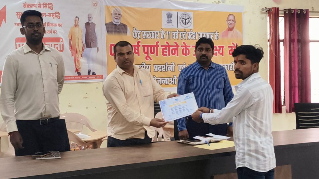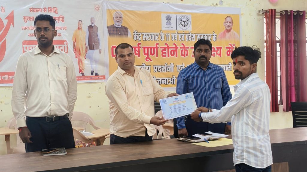 संत कबीर नगर। केन्द्र सरकार के 11 वर्ष एवं प्रदेश सरकार के 09 वर्ष पूर्ण होने के उपलक्ष्य में नव निर्माण के 09 वर्ष कार्यक्रम के अंतर्गत जनकल्याणकारी विभागों द्वारा प्रदर्शनी/मेला एवं लोक कल्याणकारी योजनाओं के प्रचार-प्रसार से सम्बंधित नौ दिवसीय कार्यक्रम का आयोजन विकास भवन परिसर के डी0पी0आर0सी0 हॉल में किया जा रहा है।