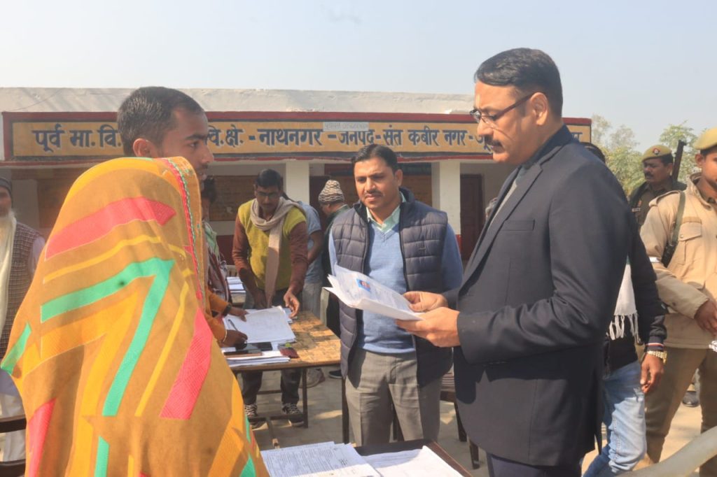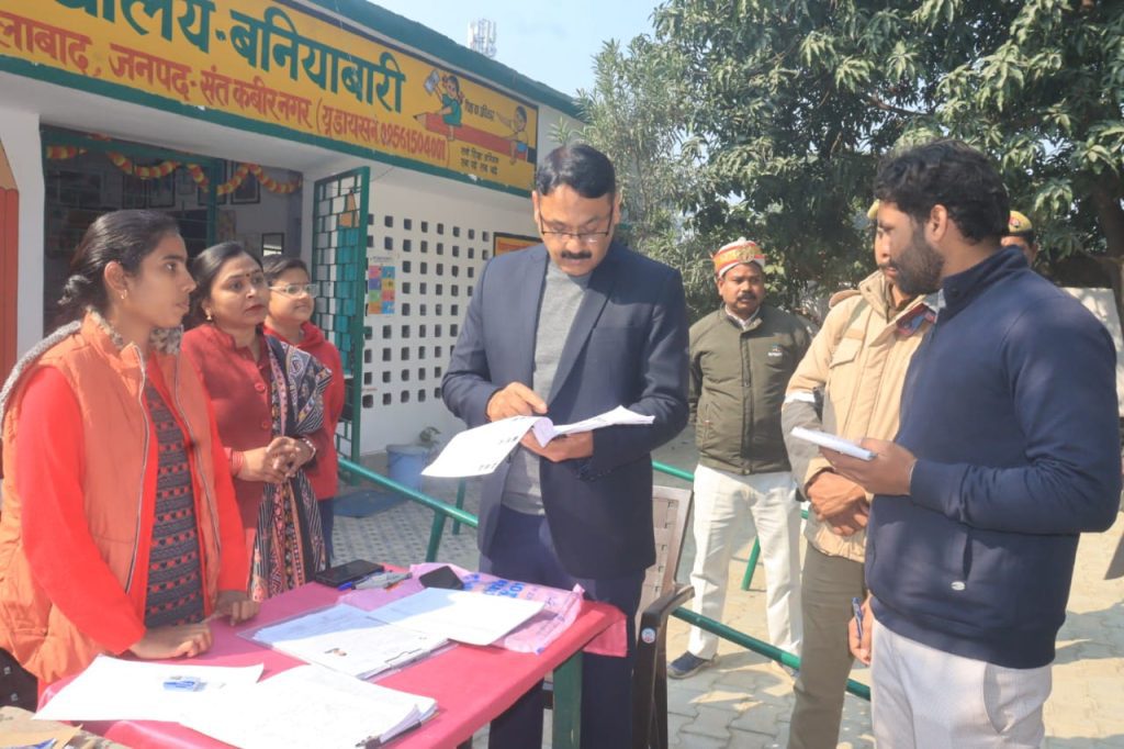 संत कबीर नगर। मा0 भारत निर्वाचन आयोग द्वारा नियुक्त रोल प्रेक्षक/मण्डलायुक्त बस्ती मण्डल बस्ती अखिलेश सिंह व जिला निर्वाचन अधिकारी/जिलाधिकारी आलोक कुमार द्वारा जनपद के विधानसभा निर्वाचन क्षेत्रों की मतदाता सूची के विशेष प्रगाढ़ पुनरीक्षण कार्यक्रम (एसआईआर) अभियान के तहत आलेख्य के प्रकाशन के बाद छूटे हुए एवं पात्र मतदाताओं का नाम मतदाता सूची में जोड़ने तथा मतदाता सूची को परिष्कृत बनाए जाने की दिशा में चलाए जा रहे अभियान के क्रम में आज विशेष अभियान तिथि के दौरान विभिन्न बूथों पर बी0एल0ओ0 द्वारा आलेख्य निर्वाचक नामावलियों को पढ़कर सुनाये जाने के अवसर पर 312-मेंहदावल, 313-खलीलाबाद व 314-धनघटा(अ0जा0) विधानसभा क्षेत्र के विभिन्न बूथों का स्थलीय निरीक्षण किया गया।