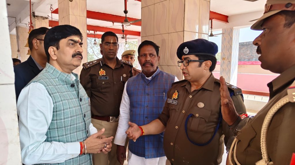 संत कबीर नगर। मंडलायुक्त बस्ती मंडल बस्ती श्री अखिलेश सिंह व उप पुलिस महानिरीक्षक बस्ती परिक्षेत्र बस्ती श्री संजीव त्यागी द्वारा जिलाधिकारी आलोक कुमार व पुलिस अधीक्षक संदीप कुमार मीना के साथ महाशिवरात्रि पर्व के दृष्टिगत तामेश्वरनाथ शिव मन्दिर/परिसर में शिवरात्री पर्व के सम्बन्ध में की जा रही तैयारियों, कानून व्यवस्था एवं मन्दिर में आने वाले श्रद्धालओं की सुरक्षा व्यवस्था व भीड़ प्रबन्धन हेतु की गई व्यवस्था आदि के संबंध में जानकारी लेते हुए संबंधित अधिकारियों को आवश्यक दिशा-निर्देश दिए गए। निरीक्षण के दौरान अधिकारीगण द्वारा जलाभिषेक के लिए लगने वाली लाइन की बैरिकेटिंग व रुट डायवर्जन आदि के बारे में जानकारी ली गयी।