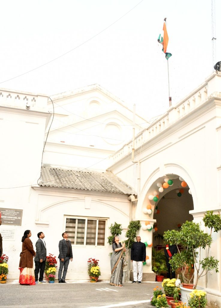 प्रयागराज। मण्डलायुक्त श्रीमती सौम्या अग्रवाल ने सोमवार को गणतंत्र दिवस के अवसर पर आयुक्त कार्यालय में राष्ट्रीय ध्वज फहराया तथा राष्ट्रगान के बाद उपस्थित अधिकारियों एवं कर्मचारियों को भारतीय संविधान के उद्देशिका की शपथ दिलायी।
