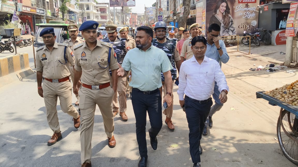 डीएम व एसपी ने पैदल गश्त के दौरान उपस्थित लोगों को भाईचारे के साथ त्यौहार मनाने तथा त्यौहार को सकुशल संपन्न कराए जाने हेतु अपील भी किया।