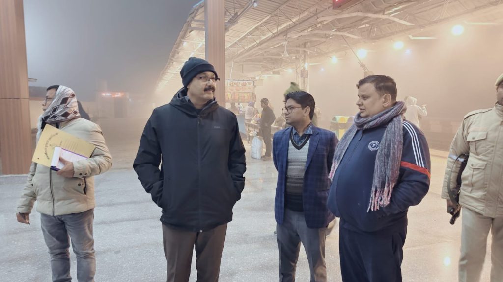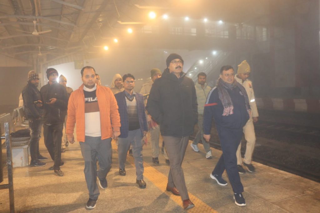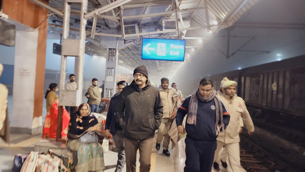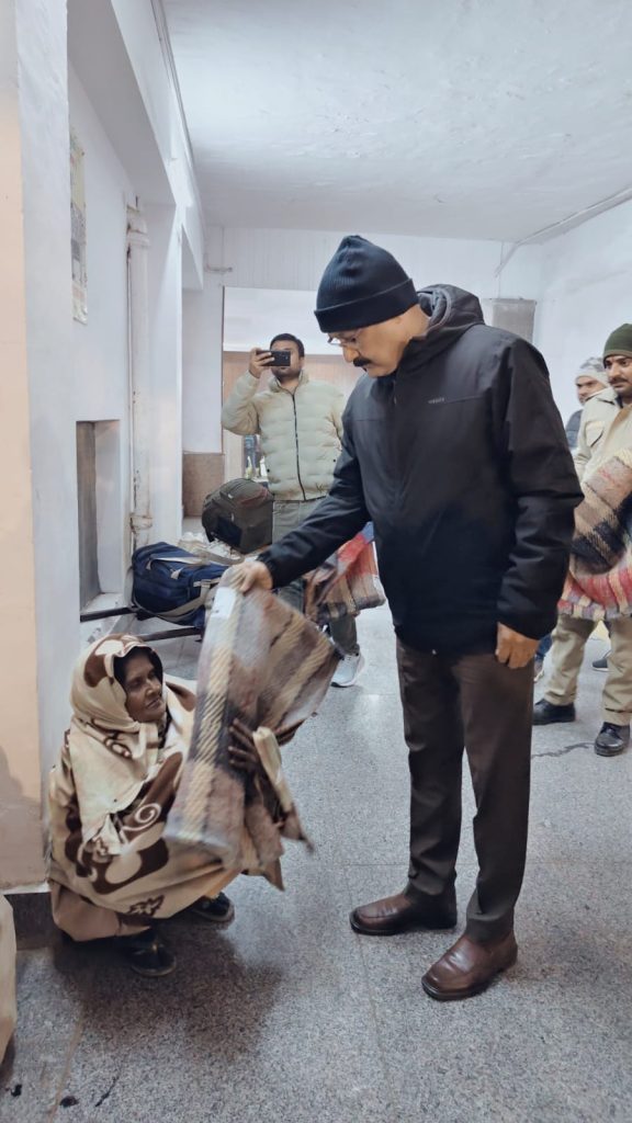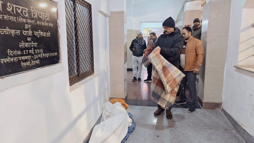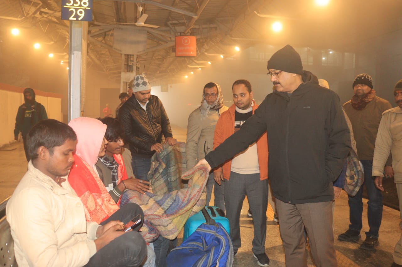 रात्रि भ्रमण के क्रम में जिलाधिकारी द्वारा खलीलाबाद रेलवे स्टेशन पर पैदल भ्रमण कर जरूरतमंदो/यात्रियों में कंबल वितरित किया गया।