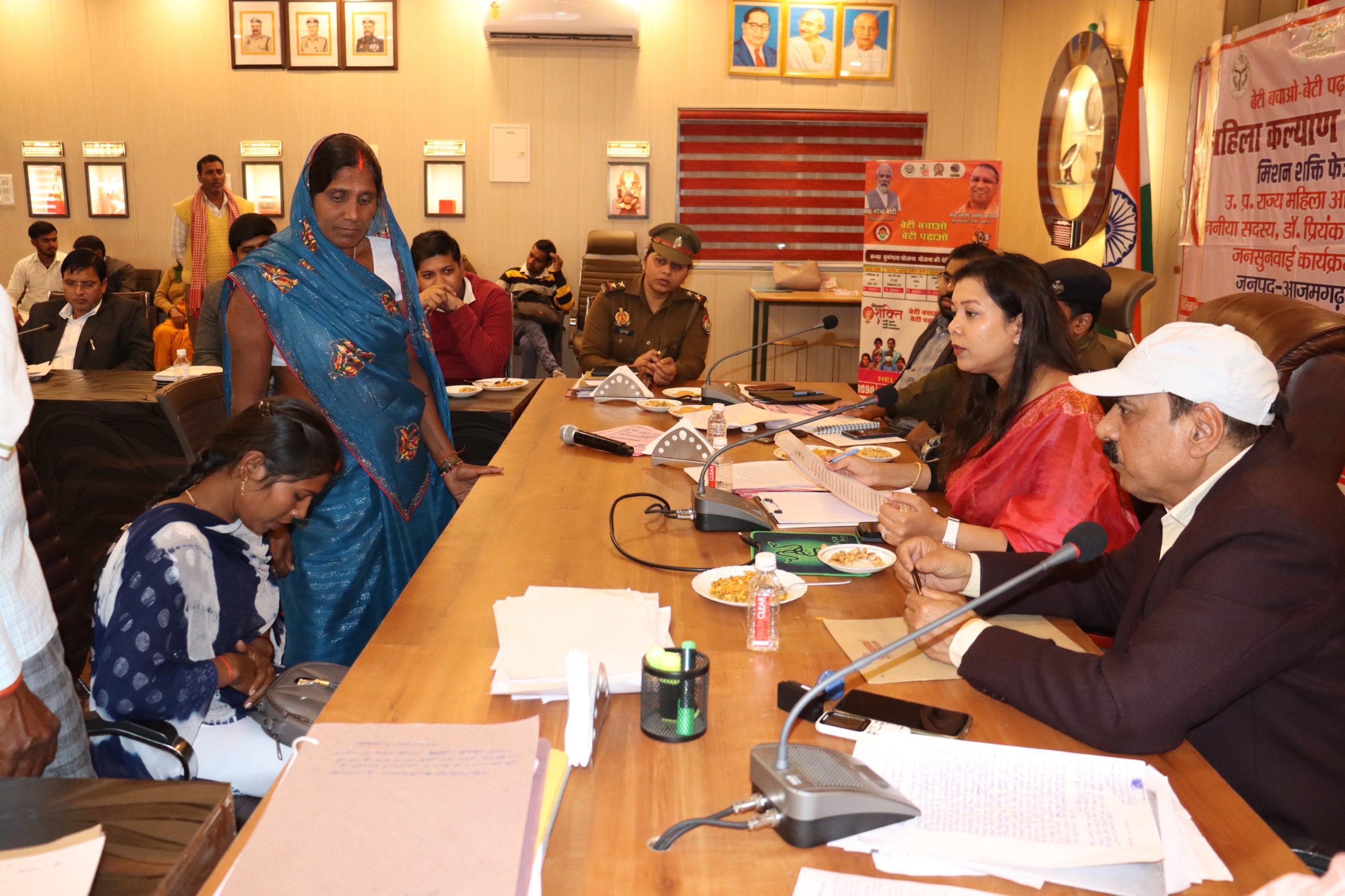 आजमगढ़। उ0प्र0 राज्य महिला आयोग की मा० सदस्य डा० प्रिंयका मौर्या द्वारा जनपद आजमगढ़ के पुलिस लाइन सभागार में जनसुनवाई कार्यक्रम का आयोजन किया गया। जनसुनवाई के अन्तर्गत कुल 35 प्रकरण प्राप्त हुए मा० महोदया द्वारा 18 प्रकरण का त्वरित निस्तारण किया गया, शेष प्रकरण को सम्बन्धित अधिकारियों को आवश्यक कार्यवाही करने हेतु निर्देशित किया गया। नोडल अधिकारी के रूप में जिला प्रोबेशन अधिकारी डी०सी० त्रिपाठी के द्वारा कार्यक्रम का संचालन किया गया।