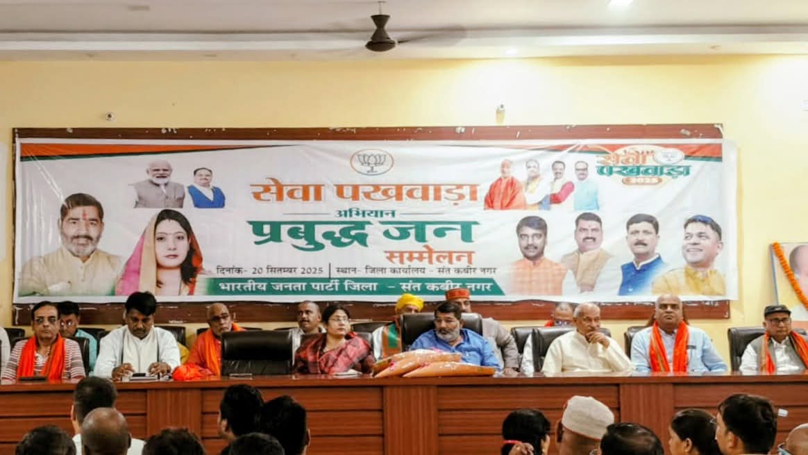 संत कबीर नगर। भारतीय जनता पार्टी द्वारा प्रधानमंत्री नरेंद्र मोदी के जन्मदिन (17 सितम्बर) से गांधी जयंती (2 अक्टूबर) तक चलाए जा रहे सेवा पखवाड़ा अभियान के तहत भाजपा जिला कार्यालय में प्रबुद्ध जन सम्मेलन का आयोजन किया गया। अभियान का उद्देश्य समाज में सेवा, सहयोग और जनजागरूकता की भावना को मजबूत करना है।
