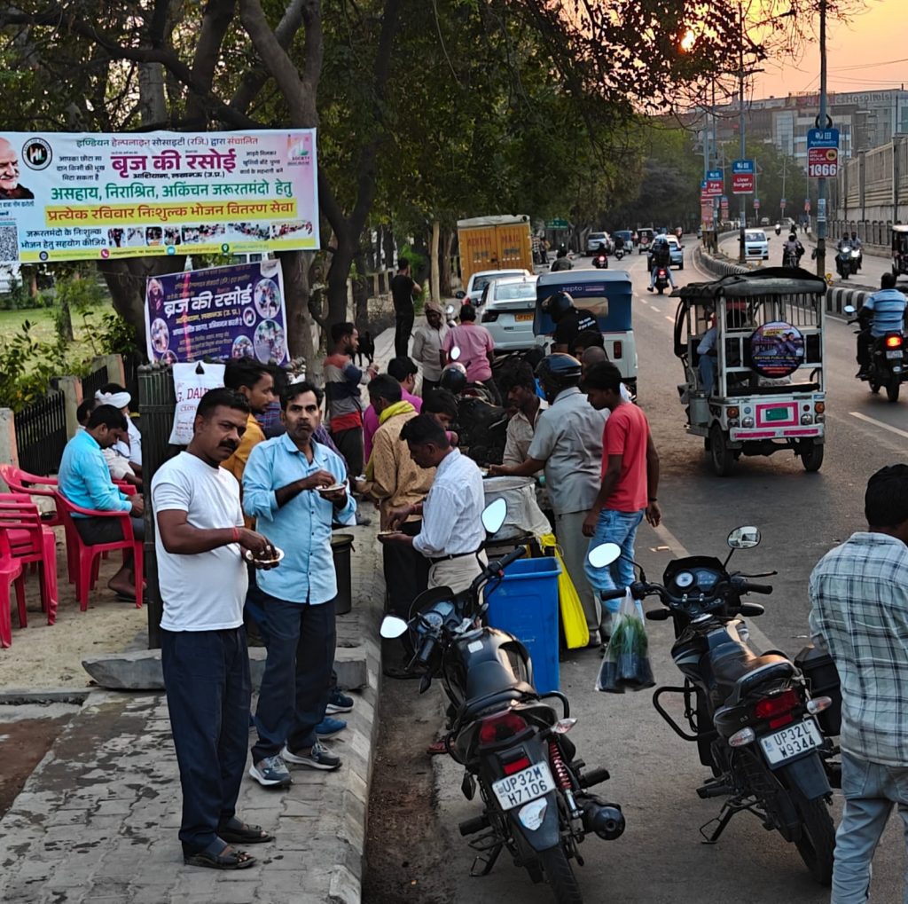 आशियाना(लखनऊ)। प्रेरणाश्रोत बाबा नीम करौली जी कृपा से इण्डियन हेल्पलाइन सोसाइटी के सेवा प्रकल्प बृज की रसोई द्वारा रविवार को आशियाना क्षेत्र में अकिंचन, असहाय, निराश्रित एवं जरूरतमंद लोगों के लिए निःशुल्क भोजन वितरण सेवा का आयोजन सफलतापूर्वक संपन्न हुआ।