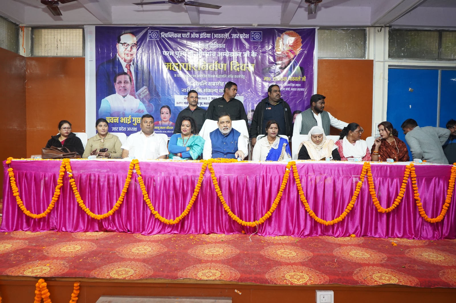 लखनऊ। भारत रत्न बोधिसत्व डॉ. भीमराव अंबेडकर के महापरिनिर्वाण दिवस के अवसर पर 06 दिसंबर 2025 को राजधानी लखनऊ के कैसरबाग स्थित गांधी भवन में रिपब्लिकन पार्टी ऑफ इंडिया (आठवले) द्वारा एक भव्य श्रद्धांजलि एवं संकल्प कार्यक्रम का आयोजन किया गया। यह आयोजन न केवल बाबा साहब को नमन करने का अवसर बना, बल्कि सामाजिक न्याय, समता और महिला सशक्तिकरण के प्रति RPI की प्रतिबद्धता का एक प्रभावशाली प्रदर्शन भी रहा।