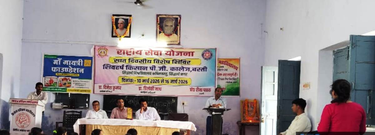 बस्ती। शिवहर्ष किसान पीजी कॉलेज में चल रहे सात दिवसीय राष्ट्रीय सेवा योजना (एनएसएस) शिविर के दौरान अंतरराष्ट्रीय ग्लूकोमा दिवस के अवसर पर ग्लूकोमा (आंखों की गंभीर बीमारी) के प्रति जागरूकता कार्यक्रम आयोजित किया गया। यह कार्यक्रम एनएसएस की दोनों इकाइयों — नेताजी सुभाष चंद्र बोस एवं रानी लक्ष्मीबाई — तथा मां गायत्री फाउंडेशन के संयुक्त तत्वावधान में संपन्न हुआ।