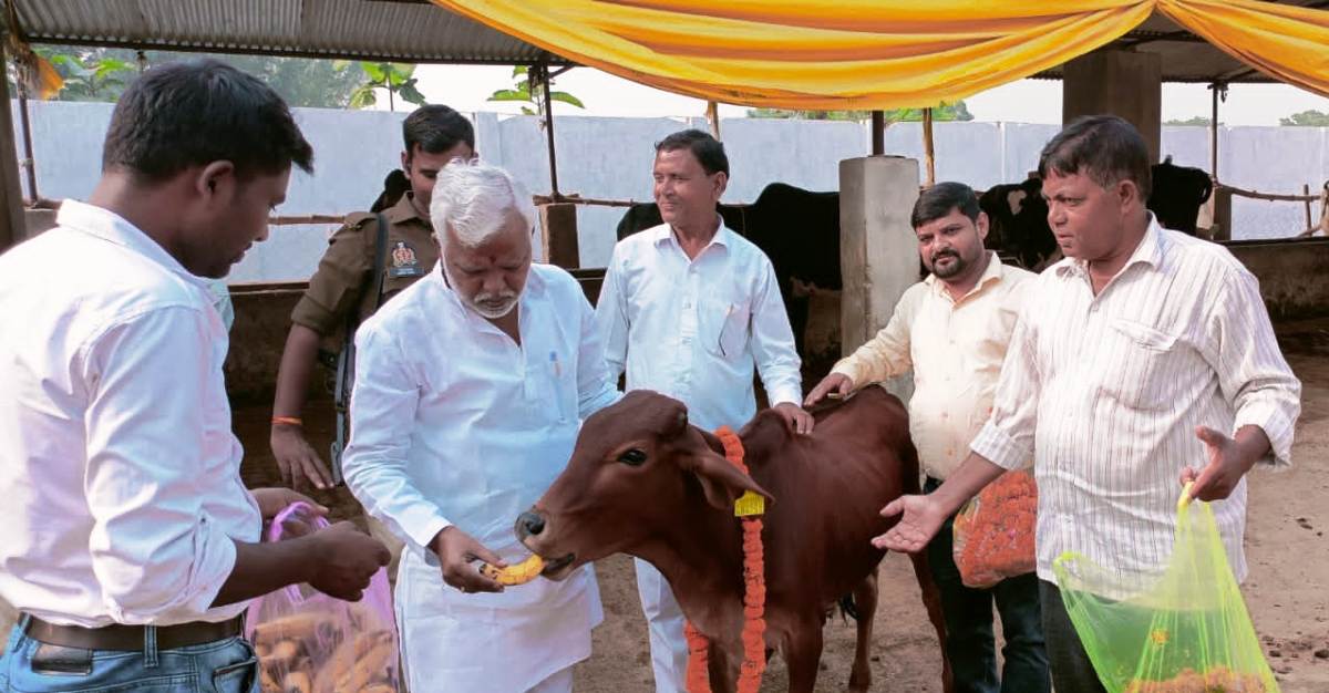 बस्ती। शनिवार को जिला पंचायत अध्यक्ष संजय चौधरी ने सल्टौआ गोपालपुर विकास खण्ड के ग्राम पंचायत आमा तृतीय में स्थित राधा कृष्ण गौशाला में गोवर्धन पूजा के अवसर पर गोवंश को गुड और फल खिलाकर विधि विधान से उनकी पूजा अर्चना किया।