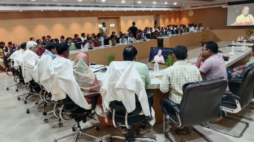 संत कबीर नगर। उ0प्र0 अधीनस्थ सेवा चयन आयेाग द्वारा निष्पक्ष एवं पारदर्शी प्रक्रिया के अन्तर्गत प्रदेश के 2425 मुख्य सेविकाओ एवं 13 फार्मासिस्टों को नियुक्ति पत्र वितरण मा0 मुख्यमंत्री, उ0प्र0 सरकार श्री योगी आदित्यनाथ जी द्वारा लोक भवन सभागार लखनऊ से किया गया। जिसका लाइव प्रसारण कलेक्ट्रेट सभागार में मा0 विधायक मेहदावल अनिल कुमार त्रिपाठी, मा0 विधायक धनघटा गणेश चंद्र चौहान, मा0 ब्लॉक प्रमुख हैसर बाजार कालिंदी चौहान, मुख्य विकास अधिकारी जयकेश त्रिपाठी व लाभार्थियों की उपस्थिति में देखा गया।