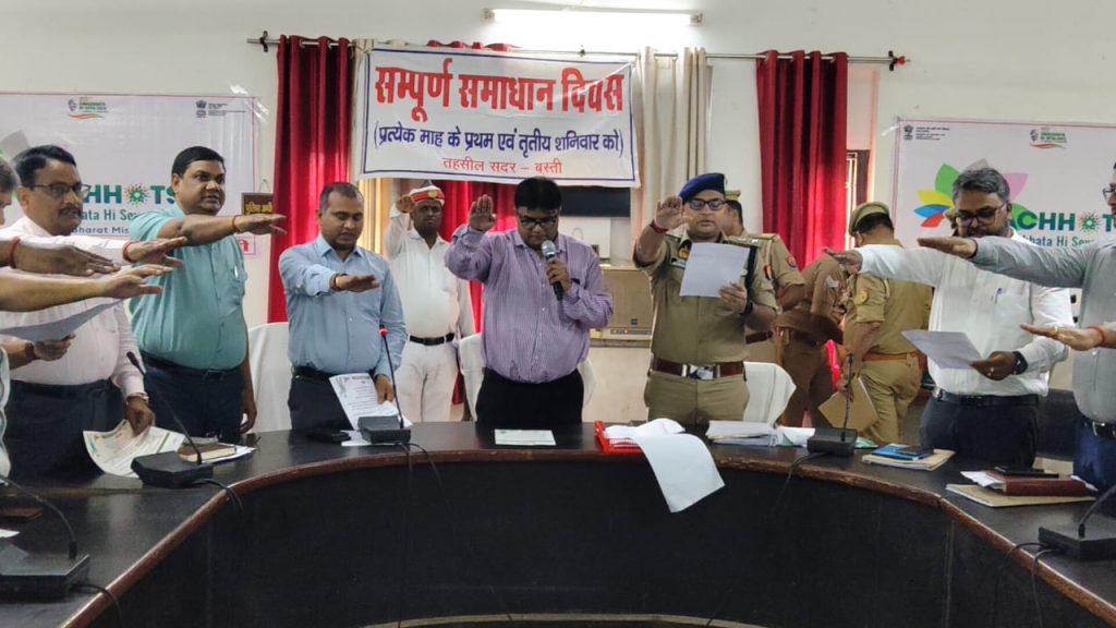बस्ती। जिलाधिकारी रवीश गुप्ता की अध्यक्षता में सम्पूर्ण समाधान दिवस तहसील बस्ती सदर में सम्पन्न हुआ। सम्पूर्ण समाधान दिवस में जिलाधिकारी ने विभिन्न विभागों से जुड़ी शिकायतों को एक-एक कर सुनते हुए मौके पर उपस्थित सम्बंधित विभागीय अधिकारियों को जनशिकायतों को निर्धारित समय सीमा के अन्तर्गत निस्तारण के लिए निर्देशित किया।