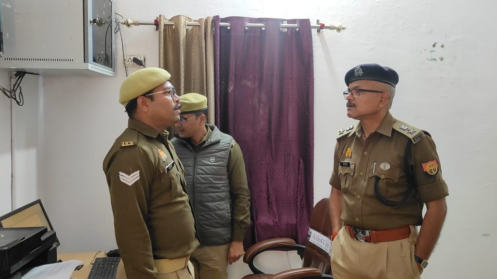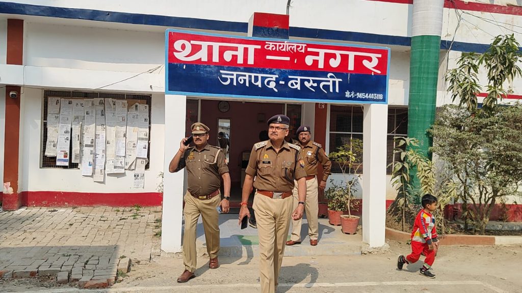 बस्ती। रविवार को प्रभारी पुलिस अधीक्षक बस्ती ओम प्रकाश सिंह द्वारा थाना नगर का औचक निरीक्षण करते हुए थाना कार्यालय, भोजनालय, मालखाना, बैरक, महिला हेल्प डेस्क, साइबर हेल्प डेस्क, हवालात, सी0सी0टी0एन0एस0 कार्यालय आदि का निरीक्षण कर अभिलेखों के उचित रख-रखाव व थाना परिसर की साफ-सफाई हेतु संबंधित को आदेशित किया गया।