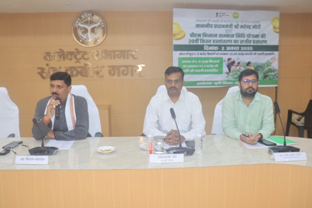 संत कबीर नगर। जनपद में शनिवार को प्रधानमंत्री किसान सम्मान निधि योजना अंतर्गत 20वीं किश्त जारी किए जाने का सजीव प्रसारण जनपद मुख्यालय, सभी विकासखंड सभागार, पंचायत भवन, प्रधानमंत्री किसान समृद्धि केंद्र, सहकारिता विभाग की समितियां, मंडी, कृषक उत्पादक संगठन के कार्यालय एवं कृषि विज्ञान केंद्र पर प्रदर्शित किया गया। जिसका सजीव प्रसारण मा0 विधायक जी सहित उपस्थित अधिकारियों एवं सम्मानित किसान भाइयों द्वारा देखा और सुना गया।