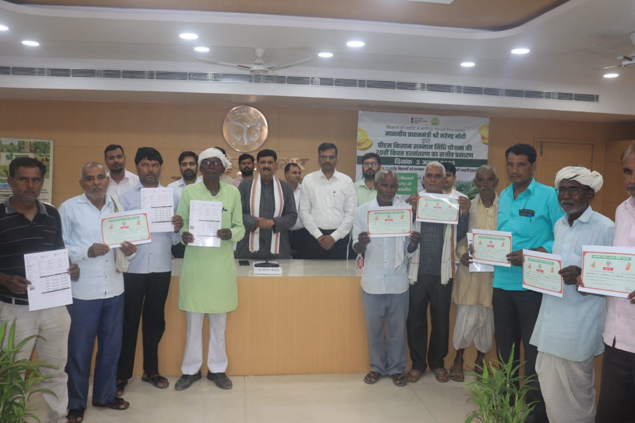 संत कबीर नगर। जनपद में शनिवार को प्रधानमंत्री किसान सम्मान निधि योजना अंतर्गत 20वीं किश्त जारी किए जाने का सजीव प्रसारण जनपद मुख्यालय, सभी विकासखंड सभागार, पंचायत भवन, प्रधानमंत्री किसान समृद्धि केंद्र, सहकारिता विभाग की समितियां, मंडी, कृषक उत्पादक संगठन के कार्यालय एवं कृषि विज्ञान केंद्र पर प्रदर्शित किया गया। जिसका सजीव प्रसारण मा0 विधायक जी सहित उपस्थित अधिकारियों एवं सम्मानित किसान भाइयों द्वारा देखा और सुना गया।