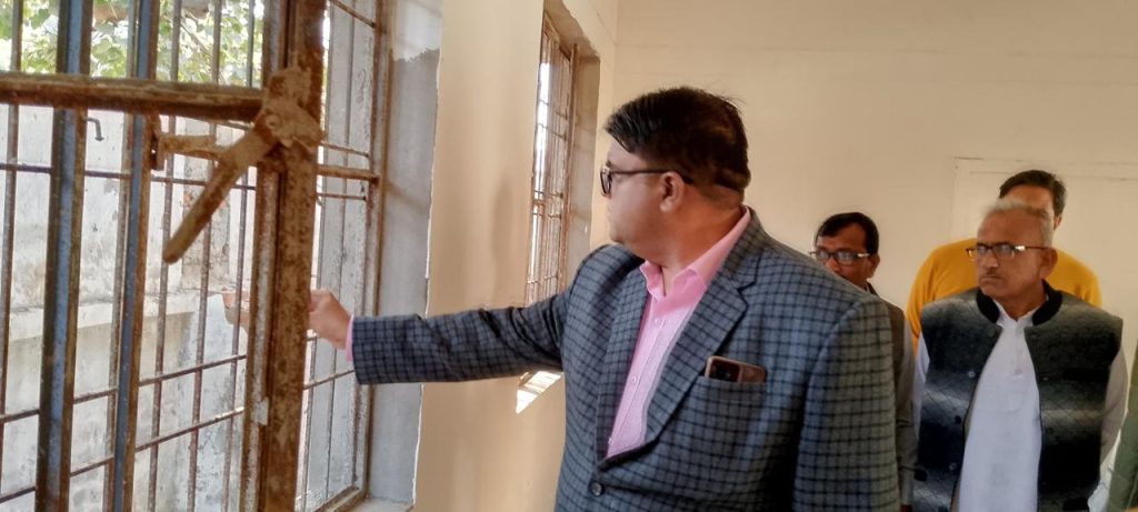 उन्होंने पाया कि कक्षों के निर्माण कार्य पूर्ण व अन्तिम स्तर पर है तथा विद्युत, सी०सी०टी०वी० कैमरे व खिड़कियों में शीशें नहीं लगे है। अवर अभियन्ता को निर्देशित किया कि बोर्ड परीक्षा के पहले विद्युत, सी०सी०टी०वी० कैमरे व खिड़कियों में शीशें लगवा दिये जाएं, जिससे बोर्ड परीक्षा में कक्षों को उपयोग में लाया जा सके। निर्माण कार्य कार्यदायी संस्था यूपीसिडको द्वारा कराया जा रहा है। निरीक्षण के दौरान संबंधित अधिकारीगण उपस्थित रहें।