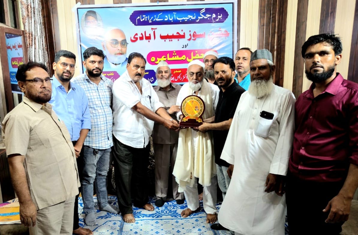 बीती रात मशहूर शायर शादाब जफर शादाब के आवास मौहल्ला नवाबपुरा मे हैदराबाद से तशरीफ़ लाये पूर्व नजीबाबाद निवासी उर्दू के मशहूर साहिब दिवान उस्ताद शायर सोज़ नजीबाबादी के एजा़ज़ में जश्न ए सोज़ नजीबाबादी व महफिल ए मुशायरे का आयोजन बज़्म ए जिगर नजीबाबाद की ओर से किया गया।
