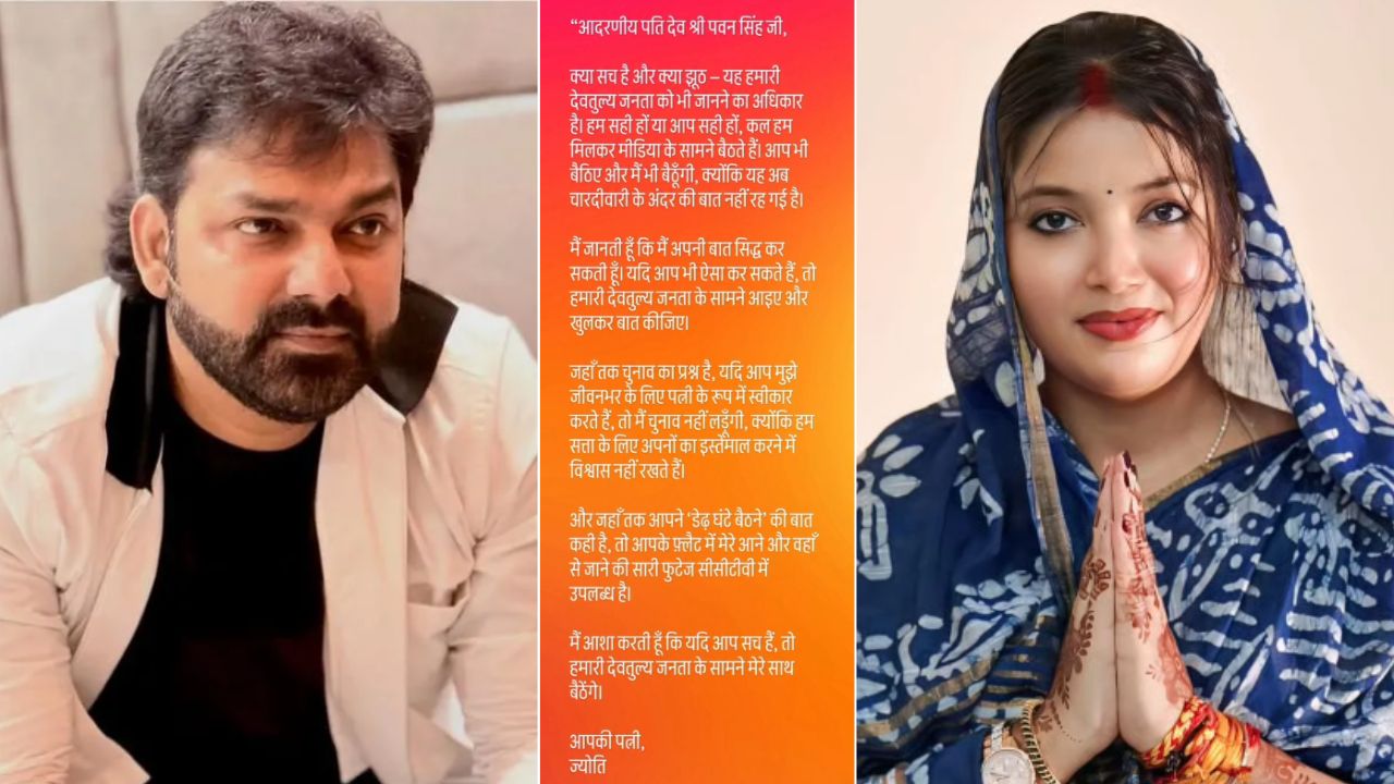 नई दिल्ली। बिहार चुनाव से पहले ही भोजपुरी सुपरस्टार पवन सिंह और ज्योति सिंह का विवाद गरमाता जा रहा है। पहले रिश्ते सुधारने के लिए पवन सिंह के घर पहुंची ज्योति सिंह ने हंगामा किया। उन्होंने पवन पर कई आरोप लगाए, जिसके बाद पवन सिंह ने सोशल मीडिया पोस्ट के जरिए खुलासा किया कि ज्योति बार-बार चुनाव लड़वाने की डिमांड कर रही हैं। अब एक बार फिर ज्योति ने सिंगर के नाम बड़ा पोस्ट लिखा है।