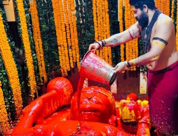 महायज्ञ के पंचम दिवस पर सुबह ब्रह्म बेला से ही भगवान हनुमान जी का महाभिषेक आरंभ हुआ। दूध, दही, घी, शहद, शक्कर, पंचामृत, गंगाजल, तीर्थजल, अष्टगंध, कुमकुम, भस्म और सुगंधित जल सहित कुल 1100 कलशों से भगवान का दिव्य अभिषेक किया गया। तत्पश्चात पंचमुखी श्रृंगी से विशेष अभिषेक सम्पन्न हुआ।