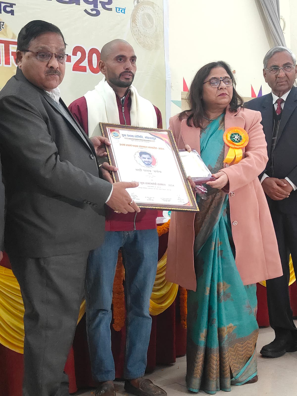 बस्ती। युवा चेतना ट्रस्ट की ओर से संचालित युवा चेतना समिति गोरखपुर का 24वां स्वर्ण पदक सम्मान समारोह गोरखपुर विश्वविद्यालय के संवाद भवन में रविवार को संपन्न हुआ। इसमें विभिन्न क्षेत्रों में उत्कृष्ट योगदान देने वाले लोगों को सम्मानित किया गया। विश्वविद्यालय में आयोजित इस सम्मान समारोह में जनपद बस्ती के लगुनही गांव के निवासी माही यादव “मनीष” को भी “विशिष्ट युवा समाजसेवी सम्मान 2024′ से सम्मानित किया गया। कार्यक्रम के मुख्यातिथि डॉ राधा मोहन दास अग्रवाल राज्यसभा सांसद और गोरखपुर विश्वविद्यालय की कुलपति प्रोफेसर पूनम टंडन ने उन्हें सम्मानित किया।