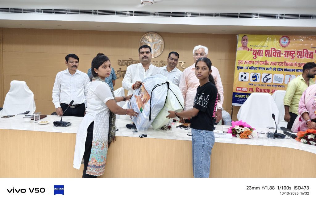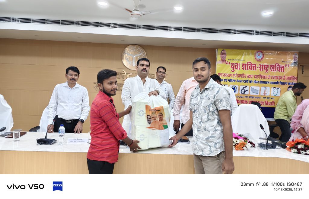 कलेक्ट्रेट सभागार में युवा कल्याण एवम् प्रांतीय रक्षक दल विभाग द्वारा आयोजित युवक एवम् महिला मंगल दलों को खेल प्रोत्साहन वितरण कार्यक्रम में कुल 34 महिला तथा 30 युवक मंगल दलों मा0 विधायक खलीलाबाद अंकुर राज तिवारी द्वारा जिलाधिकारी, मुख्य विकास अधिकारी एवम् एडीएम न्यायिक की उपस्थिति में खेल प्रोत्साहन सामग्री प्रदान की गई।