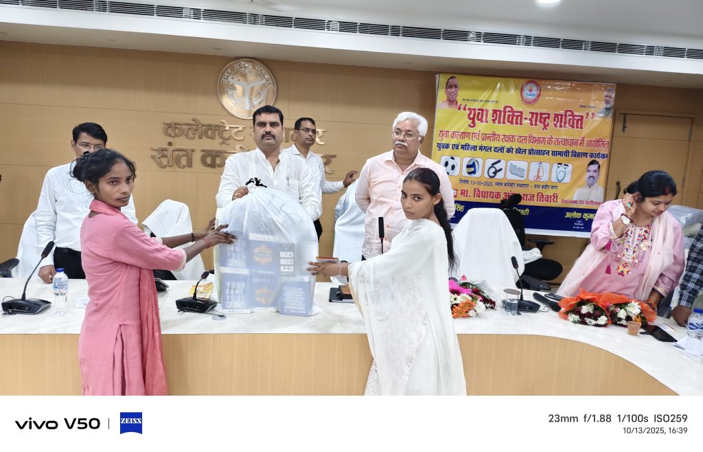 इसी क्रम में मा0 विधायक खलीलाबाद अंकुर राज तिवारी जी, जिलाधिकारी आलोक कुमार की उपस्थिति में जनपद के कलेक्ट्रेट सभागार में युवक एवम् महिला मंगल दलों को खेल प्रोत्साहन सामग्री किट वितरण करने का कार्यक्रम आयोजित किया गया।