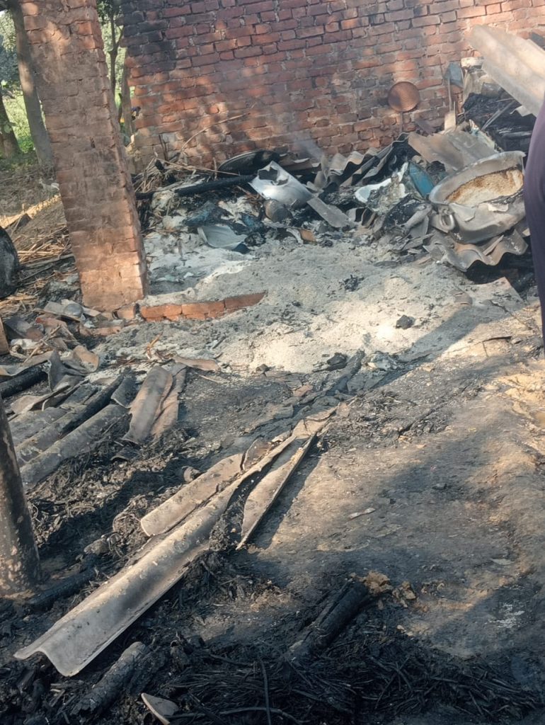 मौके पर एकत्रित लोग जब तक आग पर काबू पाते तब तक उक्त मड़हा एवं उसमें रखा सारा गृहस्थी का सामान यथा कपड़ा, भूसा, अनाज आदि जलकर राख हो गया। एक बकरी भी जलकर जलकर मर गई।