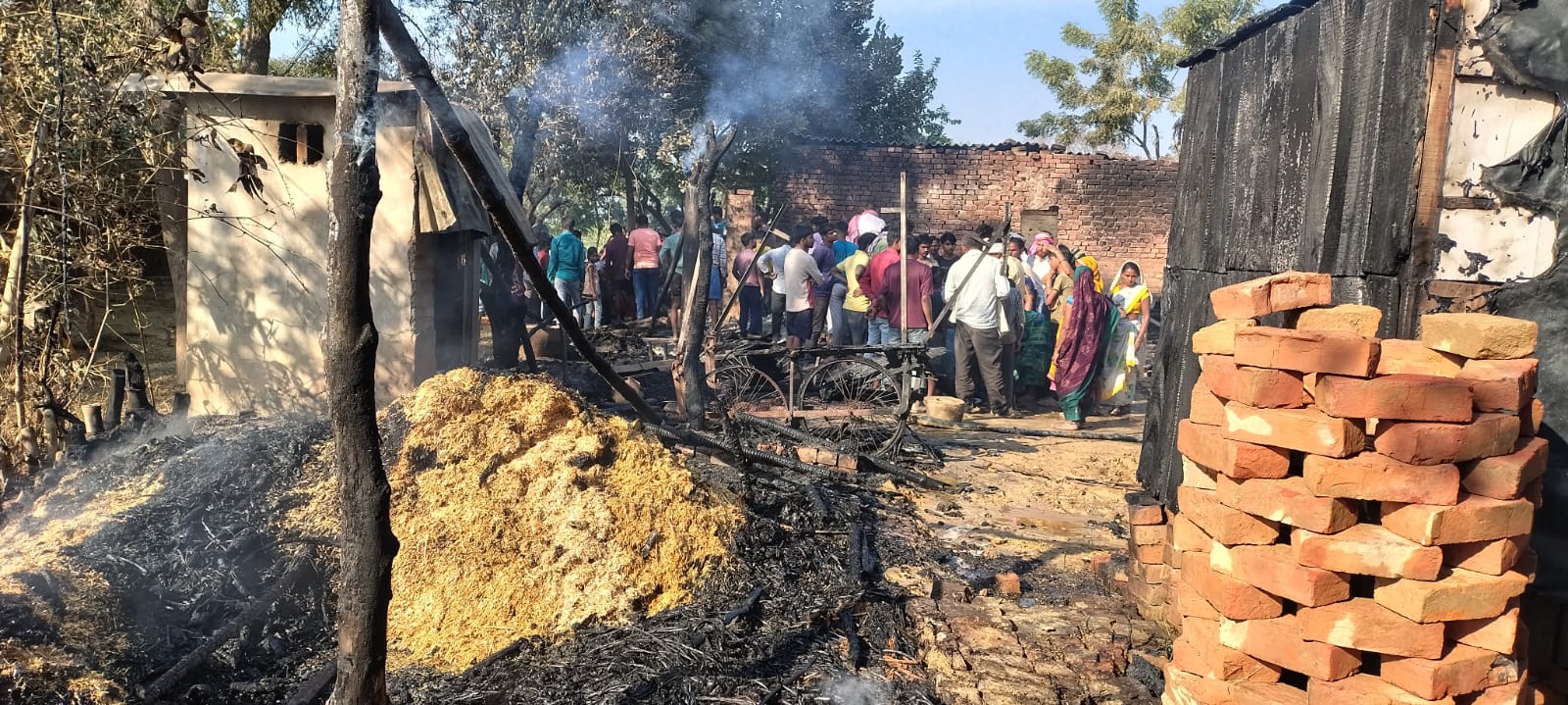 मौके पर एकत्रित लोग जब तक आग पर काबू पाते तब तक उक्त मड़हा एवं उसमें रखा सारा गृहस्थी का सामान यथा कपड़ा, भूसा, अनाज आदि जलकर राख हो गया। एक बकरी भी जलकर जलकर मर गई।