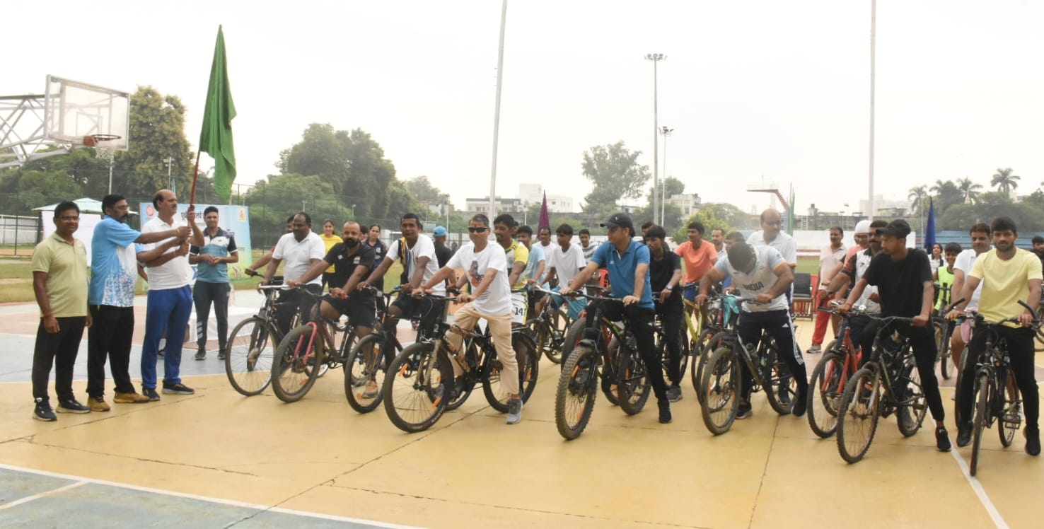 गोरखपुर: फिट इंडिया अभियान को गति प्रदान करने के उद्देश्य से पूर्वोत्तर रेलवे क्रीड़ा संघ (नरसा) के तत्त्वावधान में रविवार को सैयद मोदी रेलवे स्टेडियम, गोरखपुर में ‘संडेज ऑन साइकिल‘ का आयोजन कर ‘‘फिटनेस की डोज, आधा घंटा रोज‘‘ के संदेश के साथ साइक्लोथॉन का आयोजन किया गया। साइक्लोथॉन का शुभारम्भ महासचिव/नरसा पंकज कुमार सिंह ने वरिष्ठ स्विमिंग कोच भूपेन्द्र उपाध्याय से हरी झंडी दिखवाकर किया।